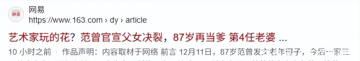 1. 网易:艺术家玩的花?范曾官宣父女决裂,87岁再当爹 第4任老婆母凭子贵